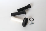 ドミノのツインプルスロットルです。ツインキャブのノートンやトライアンフに最適です。最新の製品ですが、基本的なカタチは往年のTZのスロットルを模したような形状でクラシックにもマッチします。ハイスロのためレースユースにおすすめです。